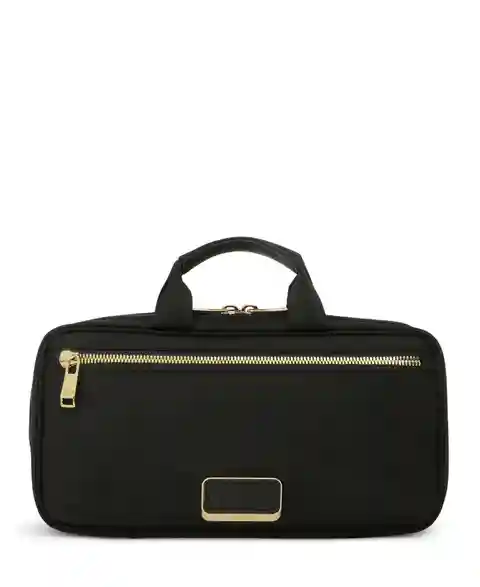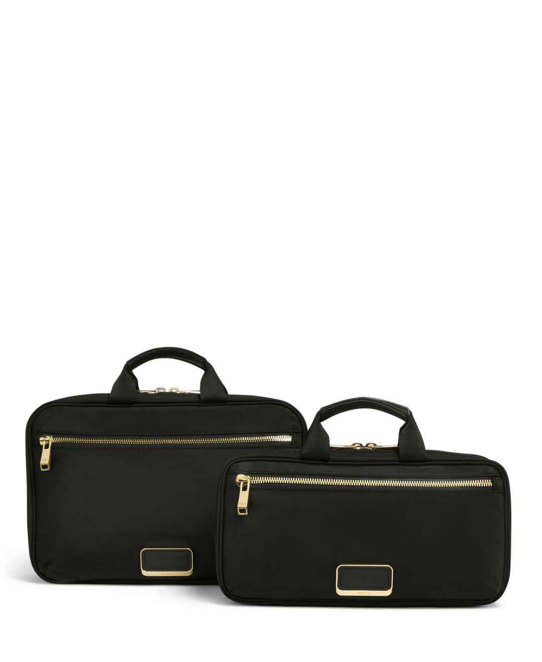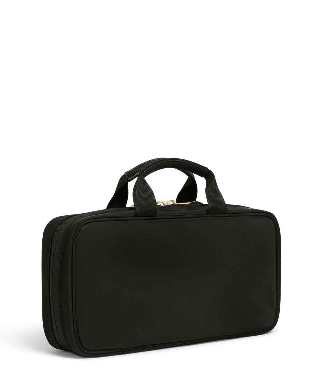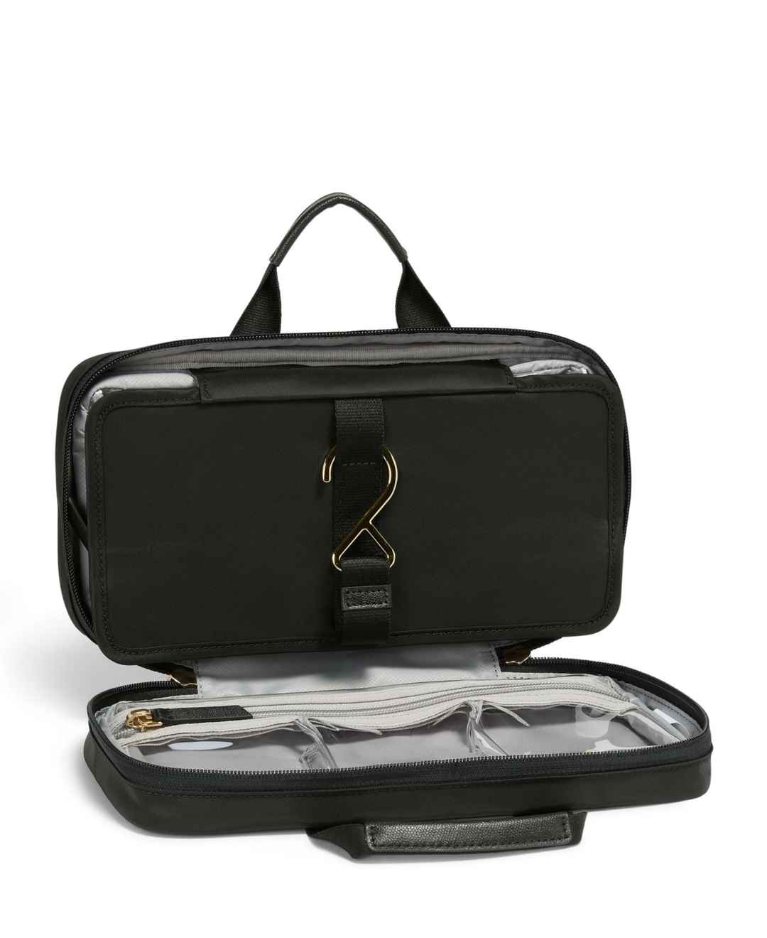 A sized-down take on our iconic travel-ready Madeline, this version keeps the three transparent compartments to optimize organization at a smaller scale. Lay it flat or hang it from a fixture when open.