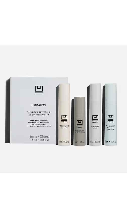 U Beauty The Index Set Vol. III in Beauty: NA. U Beauty The Index Set Vol. III in Beauty: NA. THE INDEX SET III by U BEAUTY is an exclusive portfolio featuring four unique cult-favorite formulas designed to address your skins unique needs where needed most while avoiding the likelihood of irritation...more