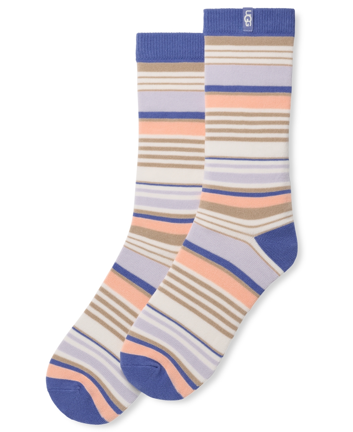 Colorful stripes bring fresh energy to these Ugg crew socks designed for everyday comfort. The rib-knit construction enhances stretch and structure, while the varsity-inspired logo detail adds subtle brand character. Soft, flexible fabric ensures a cozy feel that moves effortlessly with you througho...more