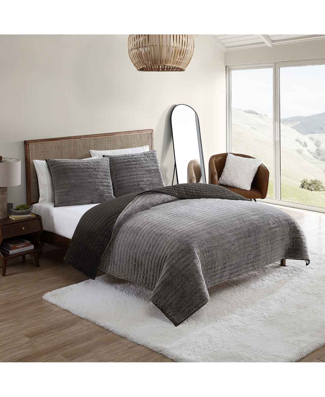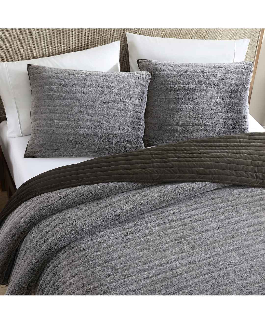 Slip into cozy warmth with this plush twin set from Ugg, a reversible quilt and matching shams with ultra-soft tipped faux fur at one side.
