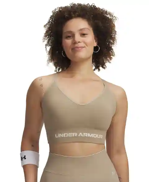 Under Armour's sports bra gives you the right support for low-impact activities. It has a longer cut, seamless fit, and adjustable straps for complete comfort.