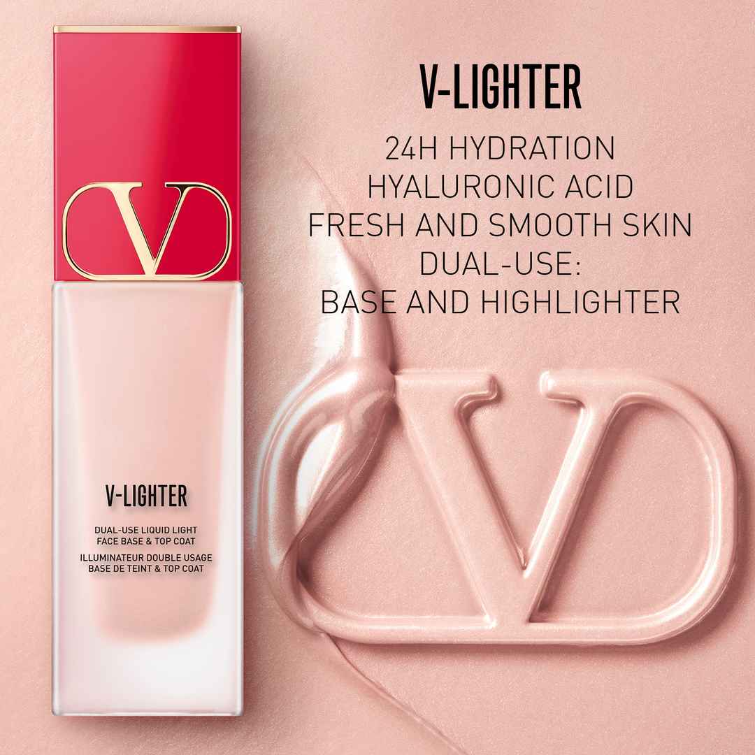 A multitasking, lightweight makeup primer formulated with skincare ingredients to provide 24-hour hydration and an instantly glowy, smoother complexion. | Valentino Beauty V-Lighter Face Base Primer And Highlighter | Shade: Rosa