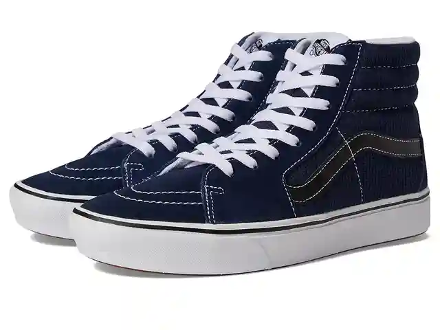 Heritage skate style meets next-level comfort with the shred-ready Vans ComfyCush SK8-Hi shoe! Classic high-top skateboard silhouette. Uppers of durable suede and canvas. Padded collar and footbed for added comfort, fit and superior shock absorption. Reinforced toecaps to withstand the rigors of ska...more