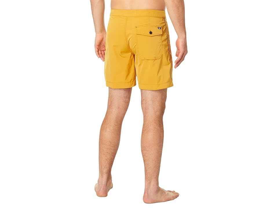 Unwind yourself resting on the beach and soak up the sun's warm beams wearing the Vans Ever-Ride Solid 17 Boardshorts. Relaxed fit. Surf-tie closure on the waist. Mid-rise. Contrasting stripe detail on the sides. Patch pocket with button-flap closure on the back. 100% polyester. Machine wash, line d...more