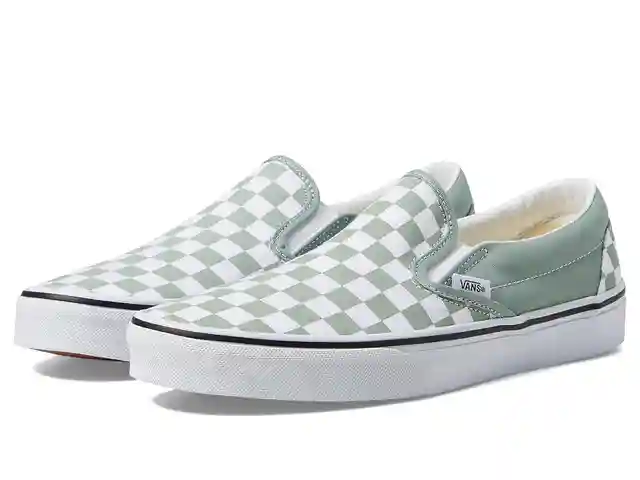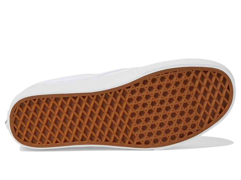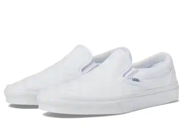 The Vans Classic Slip-On is a pop culture icon, known for its ability to dress up or down. Low profile. Canvas upper (unless otherwise noted in color name). Supportive padded collar. Elastic side accent. Round toe silhouette. Signature rubber waffle outsole. Imported. Measurements: Weight: 13 oz Pro...more
