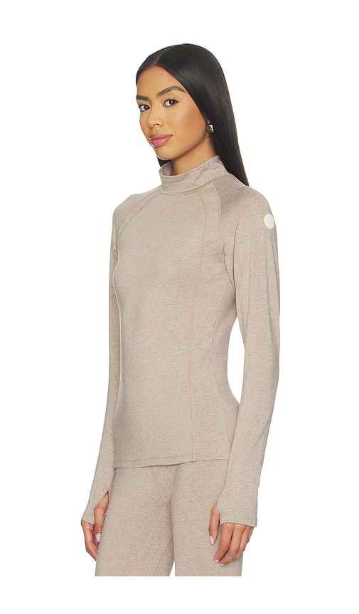 Varley Always Warm Baselayer Top in Taupe. - size L (also in M, XL, XS) Varley Always Warm Baselayer Top in Taupe. - size L (also in M, XL, XS) 71% polyester recycled 15% polyester 14% elastane. Dry clean recommended. Pull-on styling. High collar. Thumbhole cuffs. Semi-tight fit. Stretchy wear. VARR...more