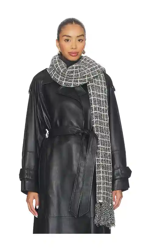 Varley Lindsey Check Knit Scarf in Charcoal.