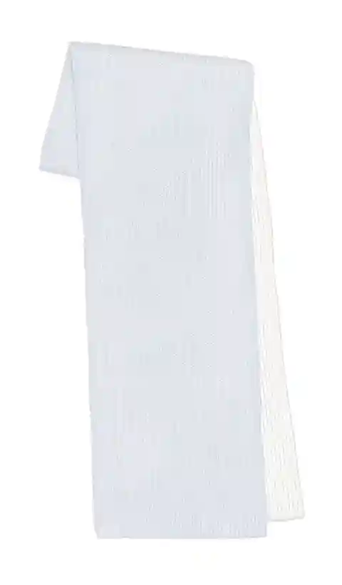 Varley Deville Plated Scarf in Baby Blue. Varley Deville Plated Scarf in Baby Blue. 65% Acrylic 18% Nylon 10% Alpaca 7% Polyester. Delicate dry clean only. Remove any naturally occurring pilling by brushing gently with a knitwear comb or using a fabric shaver.. Alpaca blend yarn. All-over rib stitch...more