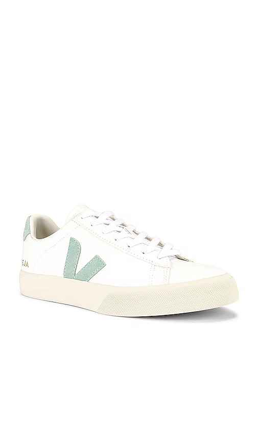 Veja Campo Sneaker in White. - size 44 (also in 46) Veja Campo Sneaker in White. - size 44 (also in 46) ChromeFree leather upper with Amazonian rubber sole. Made in Brazil. Lace-up front. Suede V logo at side. Suede contrast back counter with printed Veja logo detail. Technical lining. VFJA-MZ2. CP0...more