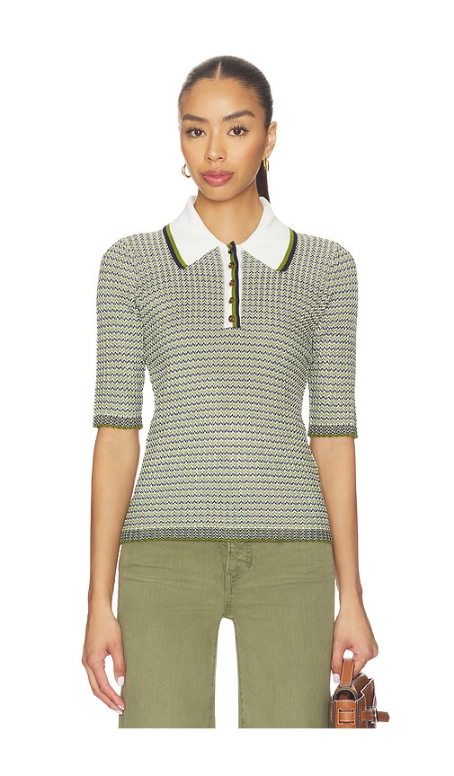 Veronica Beard Soza Polo Top in Green. - size L (also in XS, S, M) Veronica Beard Soza Polo Top in Green. - size L (also in XS, S, M) 85% rayon 13% nylon 2% elastane. Dry clean only. Front partial button closure. Attached collar. Ribbed trim. Midweight jersey fabric. VBRD-WS270. 2603KS1490467. Veron...more