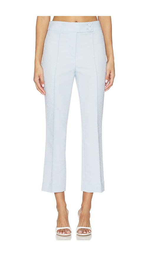 Veronica Beard Dell Pant in Baby Blue. - size 0 (also in 2, 4, 6, 10) Veronica Beard Dell Pant in Baby Blue. - size 0 (also in 2, 4, 6, 10) Self & Lining: 100% polyester. Made in USA of imported materials. Dry clean only. Zip fly with dual hook and bar closure. Back faux welt pockets. Midweight flor...more