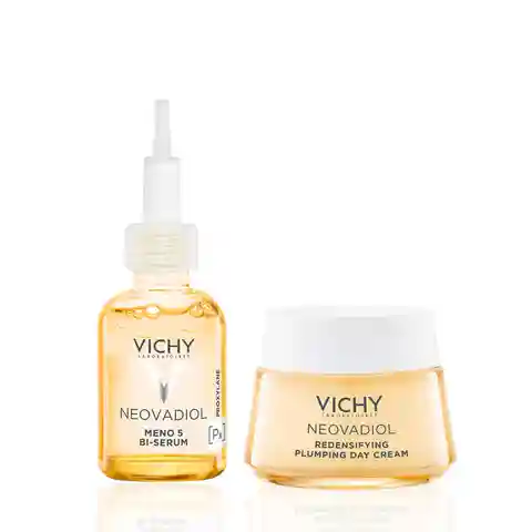 The Peri-Menopause Duo helps skin feel redensified by firming and plumper by improving skins bounciness. Featuring:Step 1 - Neovadiol Meno 5 Serum: Leading up to and during menopause, hormonal variation may lead to reduced collagen and lipid production in the skin, and you may start to notice increa...more