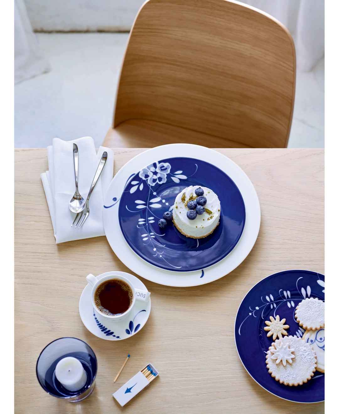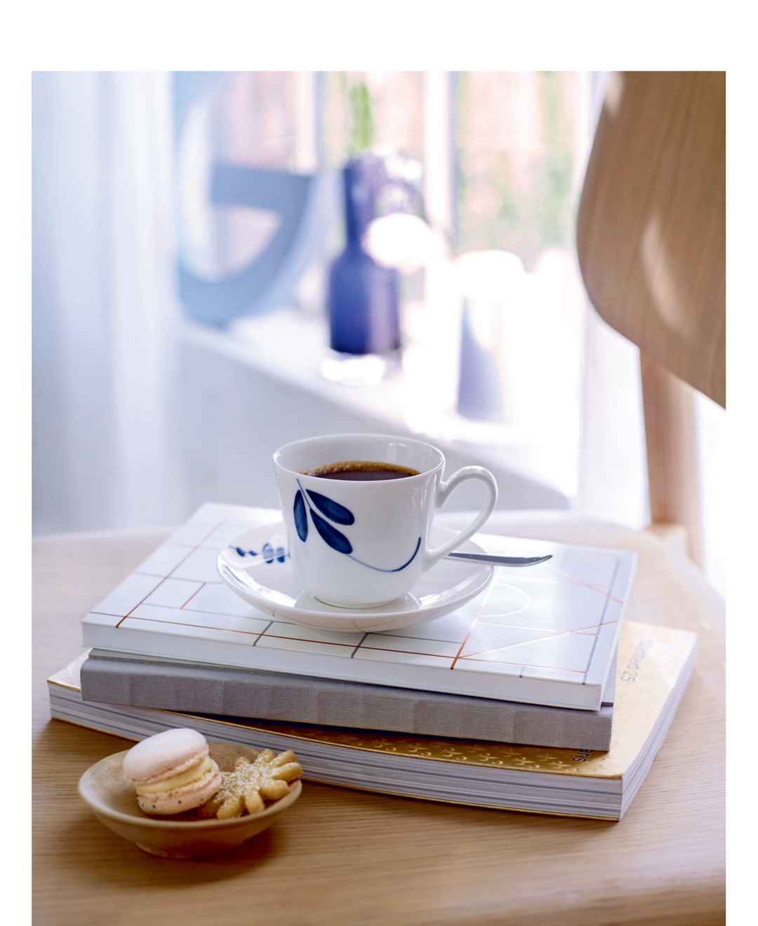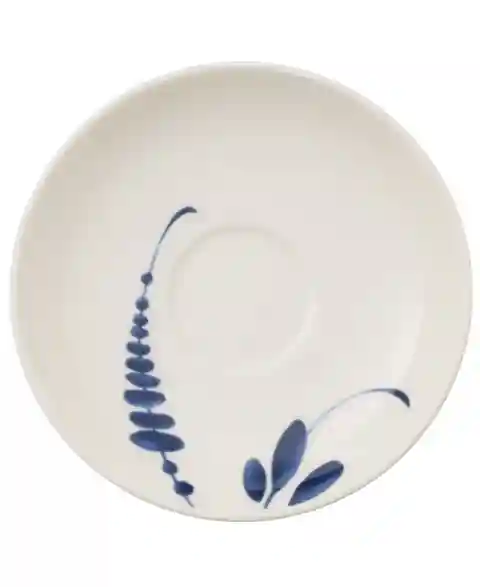 An eye-catching, cobalt blue floral branch design on white porcelain adds to the modern beauty and utility of Villeroy & Boch's Old Luxembourg Brindille espresso cup saucer.
