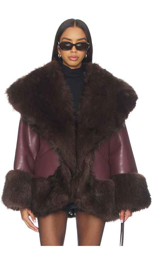 Home WeWoreWhat WeWoreWhat x REVOLVE Cocoon Faux Fur Jacket in Burgundy. - size L (also in M, S, XS)