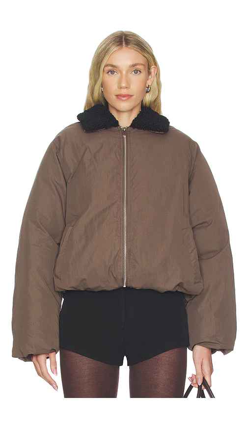 WeWoreWhat Faux Fur Collar Balloon Jacket in Taupe. - size L (also in M, S, XL, XS) WeWoreWhat Faux Fur Collar Balloon Jacket in Taupe. - size L (also in M, S, XL, XS) Self: 64% cotton 36% nylon Lining: 100% polyester. Made in China. Dry clean only. Front zip closure. Side seam pockets. Midweight ga...more