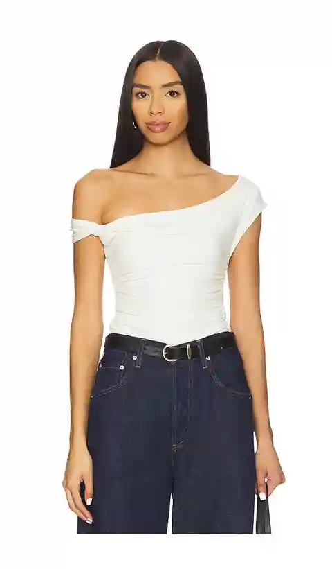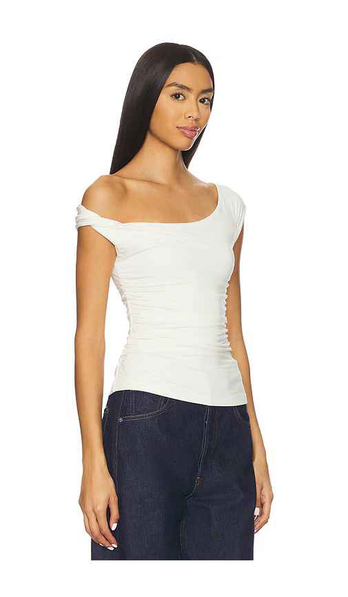 WeWoreWhat Twisted Off The Shoulder Top in Ivory. - size L (also in M, S, XL, XS) WeWoreWhat Twisted Off The Shoulder Top in Ivory. - size L (also in M, S, XL, XS) 91% modal 9% spandex. Hand wash. Pull-on styling. One shoulder design. Ruched sides. Midweight jersey fabric. WWWR-WS247. WWT248-01. Dan...more