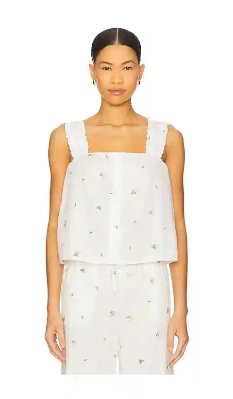 WeWoreWhat Ruffle Button Front Tank in Ivory. - size L (also in M, S, XL, XS)
