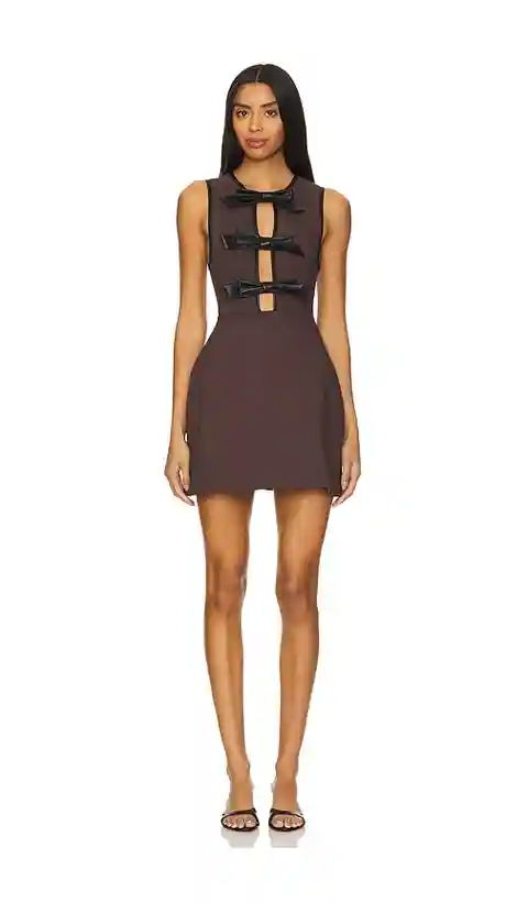Home WeWoreWhat WeWoreWhat Piped Peplum Mini Dress in Brown. - size 10 (also in 0, 00, 12, 2, 4, 6, 8)