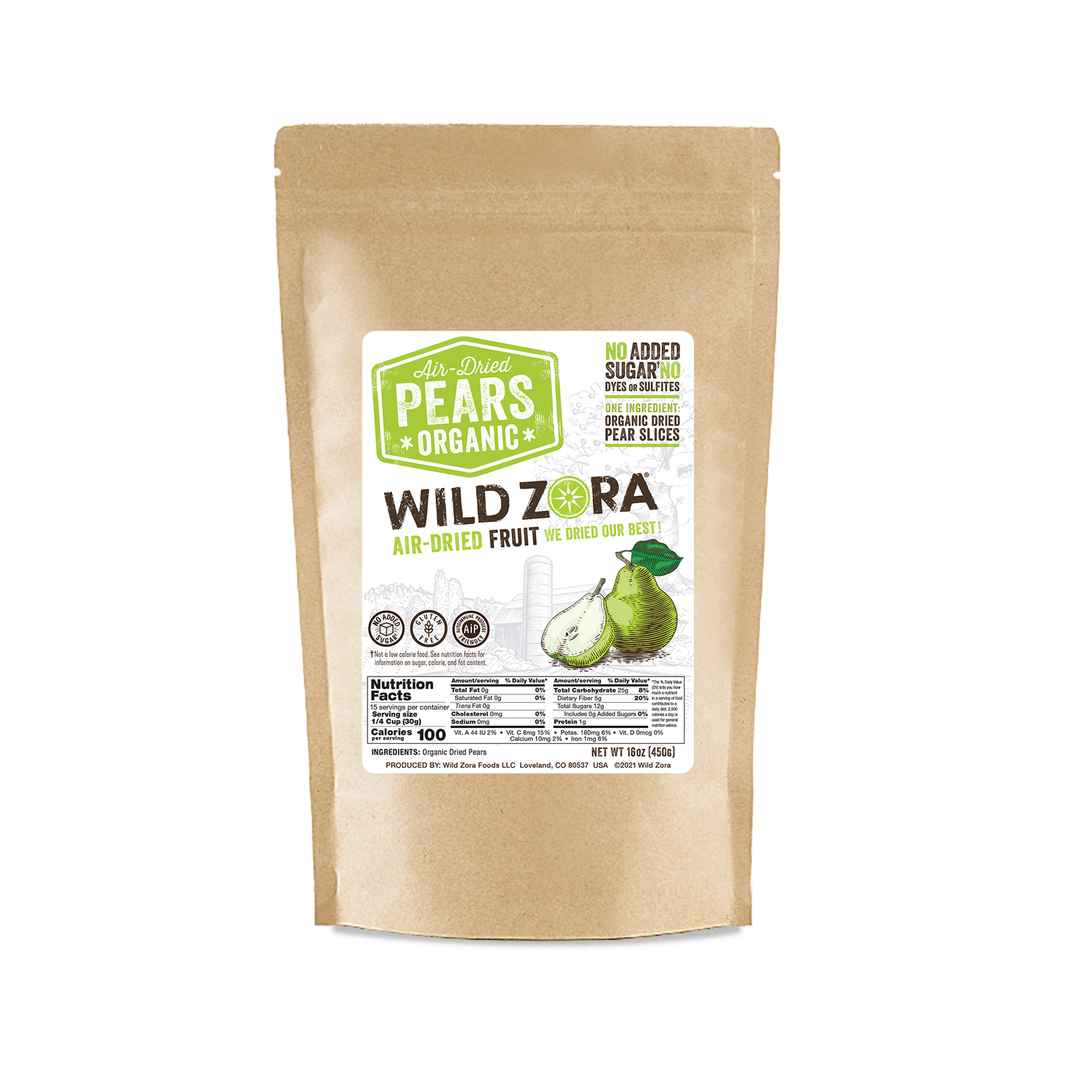 Ingredients: Organic Air-Dried Pears When you order one pound of our Organic Air-Dried Pears, thats exactly what youre gettingjust fruit! No fillers, no added sugar, and no preservatives. Our Bulk Fruits do not have any artificial sugar, dyes, or chemical preservatives. They have a best-by date of 2...more