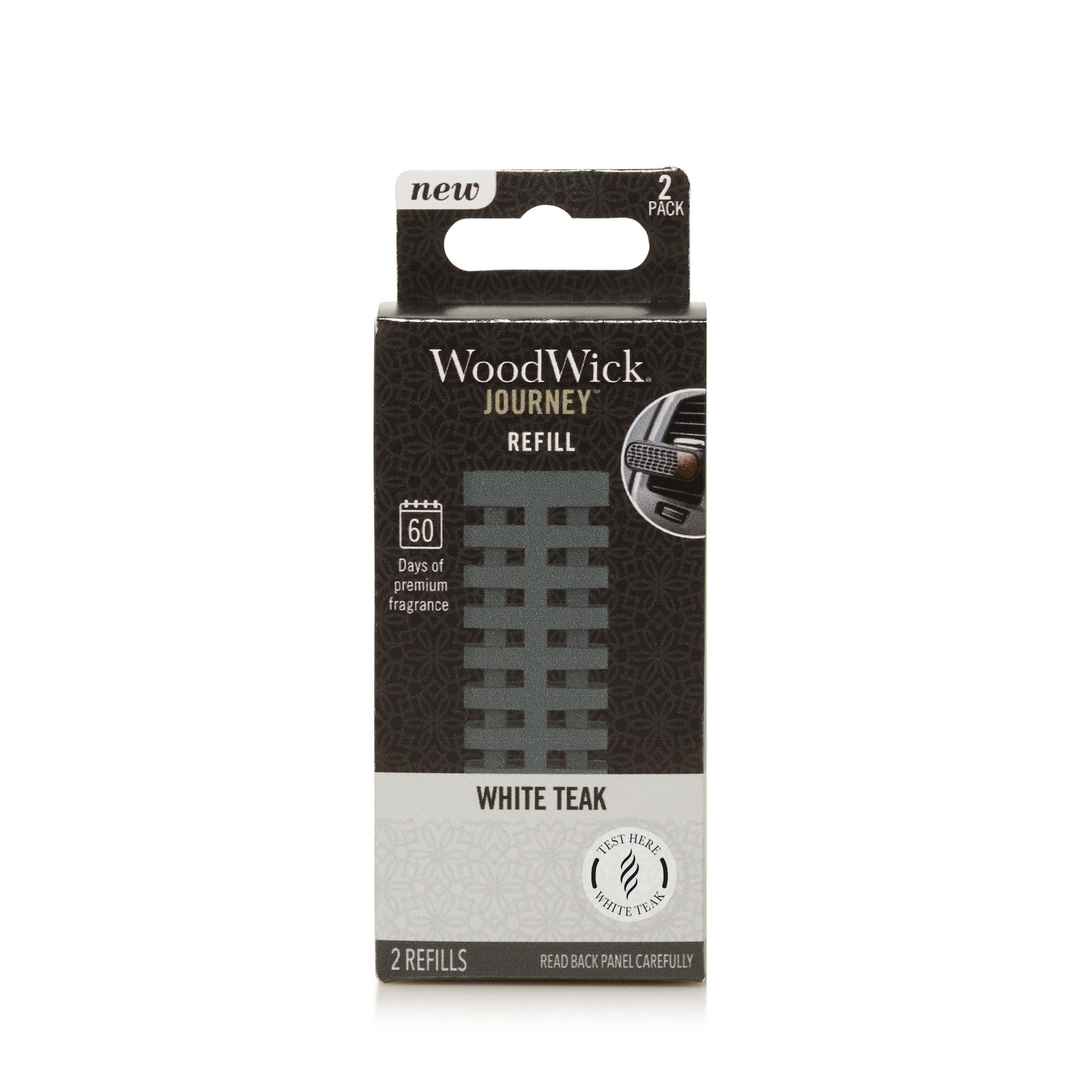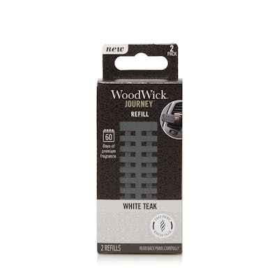 Crisp balsam branches mixed with sandalwood, and teak, with hints of moss and cedarwood. These two fragrance refills are designed for the WoodWick Journey Vent Diffuser, allowing you to experience inspired style and distinctive fragrance on every trip. Each Refill lasts up to 30 days White Teak Wood...more