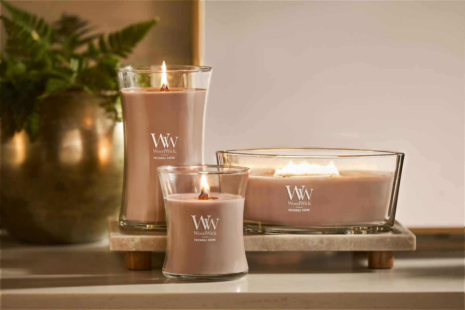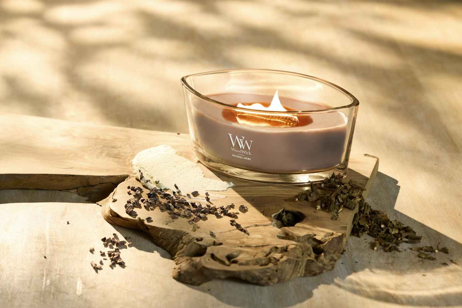 Patchouli Creme WoodWick Ellipse Candle, 16 oz