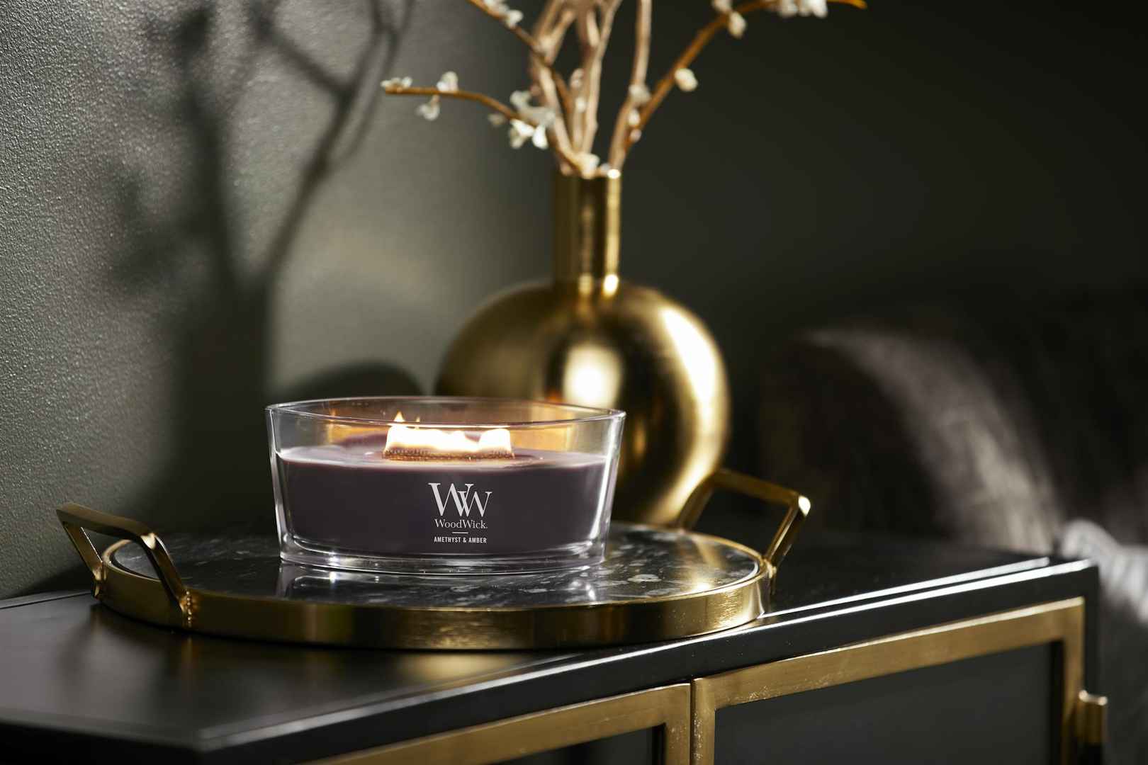 A complex blend of lavender and tuberose scents mixed with facets of amber and guaiacwood. Our Ellipse Candle makes a statement while personalizing your space with rich, nuanced fragrance. The Hearthwick Flame enhances the sensory experience with a distinctive crackle and intriguing glow. This uniqu...more