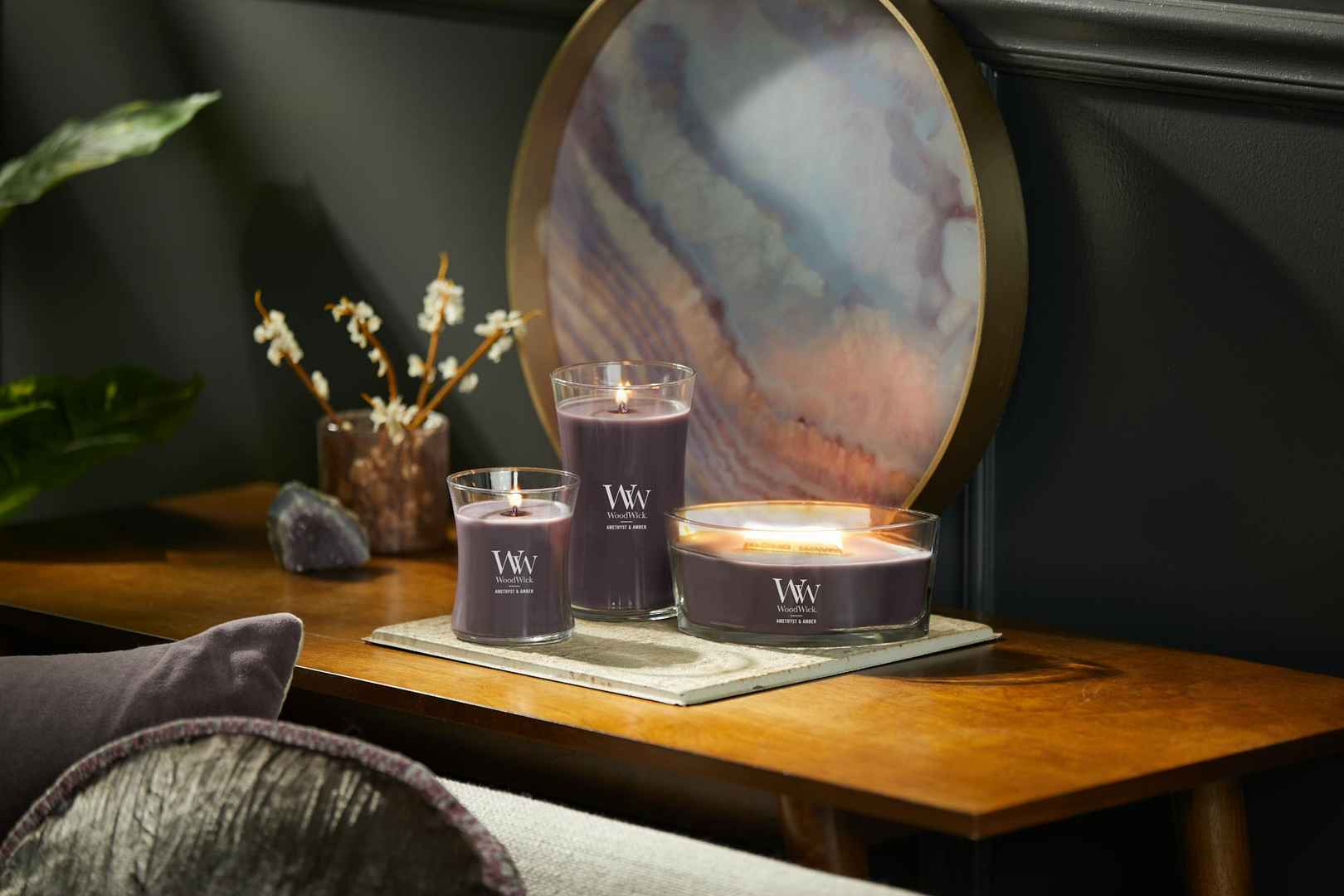 Amethyst and Amber WoodWick Medium Hourglass Candle, 9.7 oz