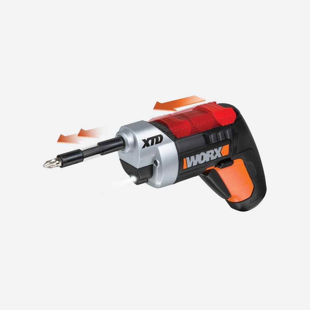 The WORX 4V Cordless XTD Xtended Reach Driver features an extending shaft and offset design, providing easy access to recessed or hard-to-reach areas. Includes a 3 Year Warranty. WORX 4V Cordless XTD Xtended Reach Driver