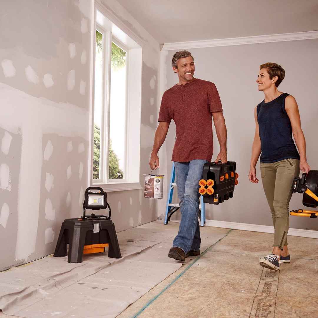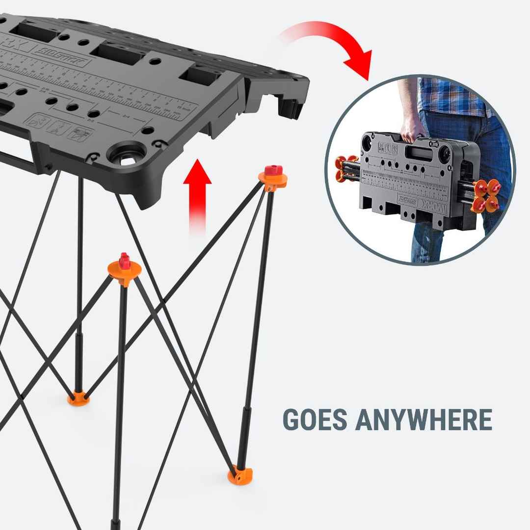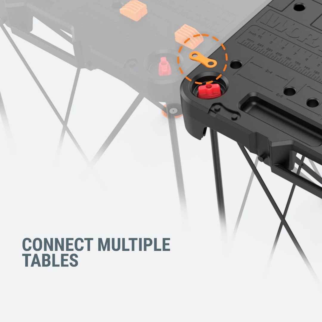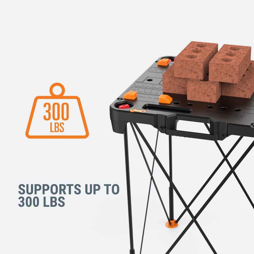 Same working height as the Pegasus & Clamping sawhorses (32"). Includes 4 clamp dogs and rubber buttons on feet for non slip Sidekick Portable Work Table | WORX