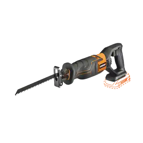 The WORX 20V Reciprocating saw, uses a pendulum function for improved cutting efficiency and powershareTM 20V battery is interchangeable with other 20V WORX tools WORX 20V Power Share Reciprocating Saw - Tool Only