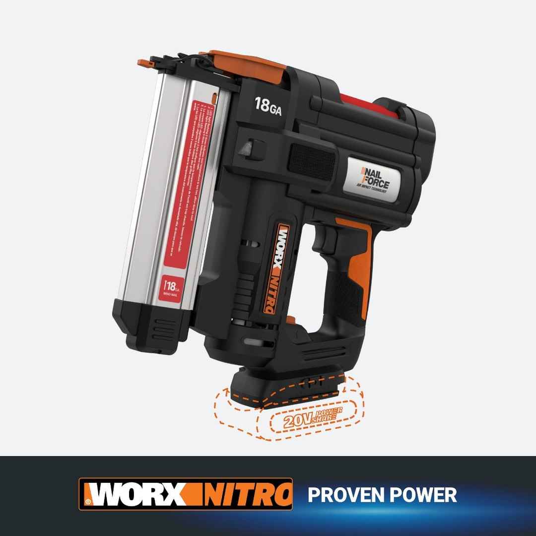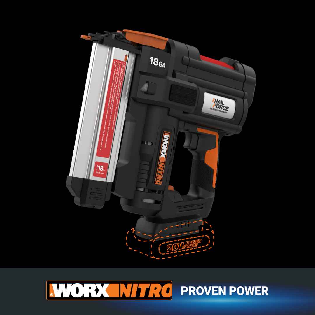 WORX Nitro 20V Cordless 18Ga Brad Nail Gun (Tool Only)