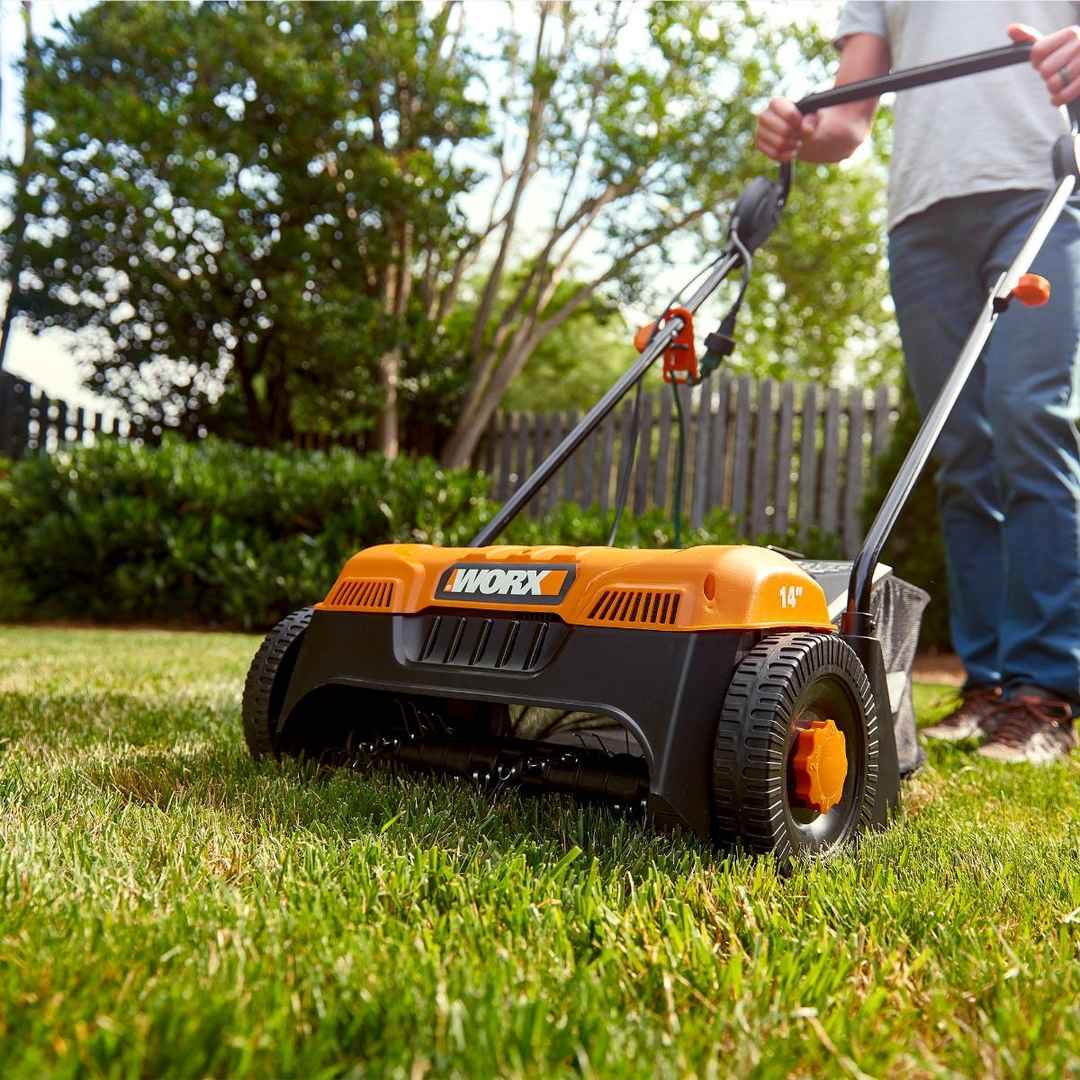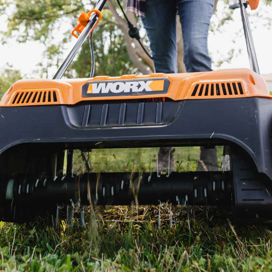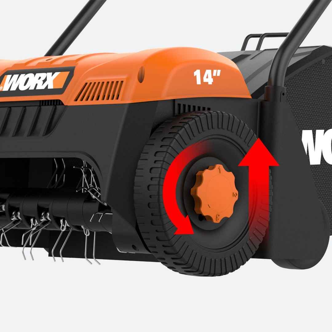 12 Amp 14" Electric Dethatcher - 3-position dethatching depth-adjustment. 12 Amp 14" Electric Dethatcher | WORX