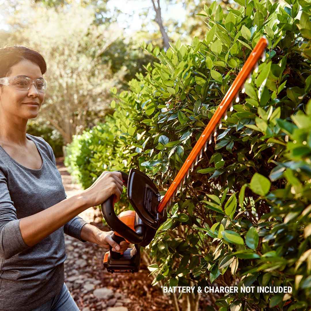 At only 5 lbs. you can hold it up high without getting tired. And still have the energy to trim in the front yard, the back, even the neighbors if their shrubs are looking rough. D GRIP FRONT HANDLE Cut at any angle. Use any hand position. With a D grip handle you can use it any way you like it. WOR...more
