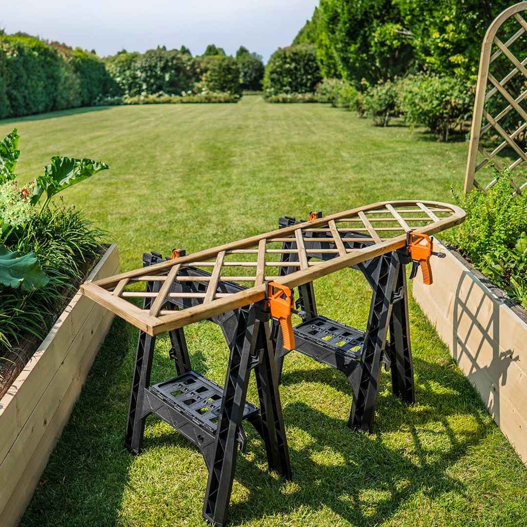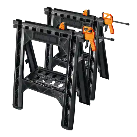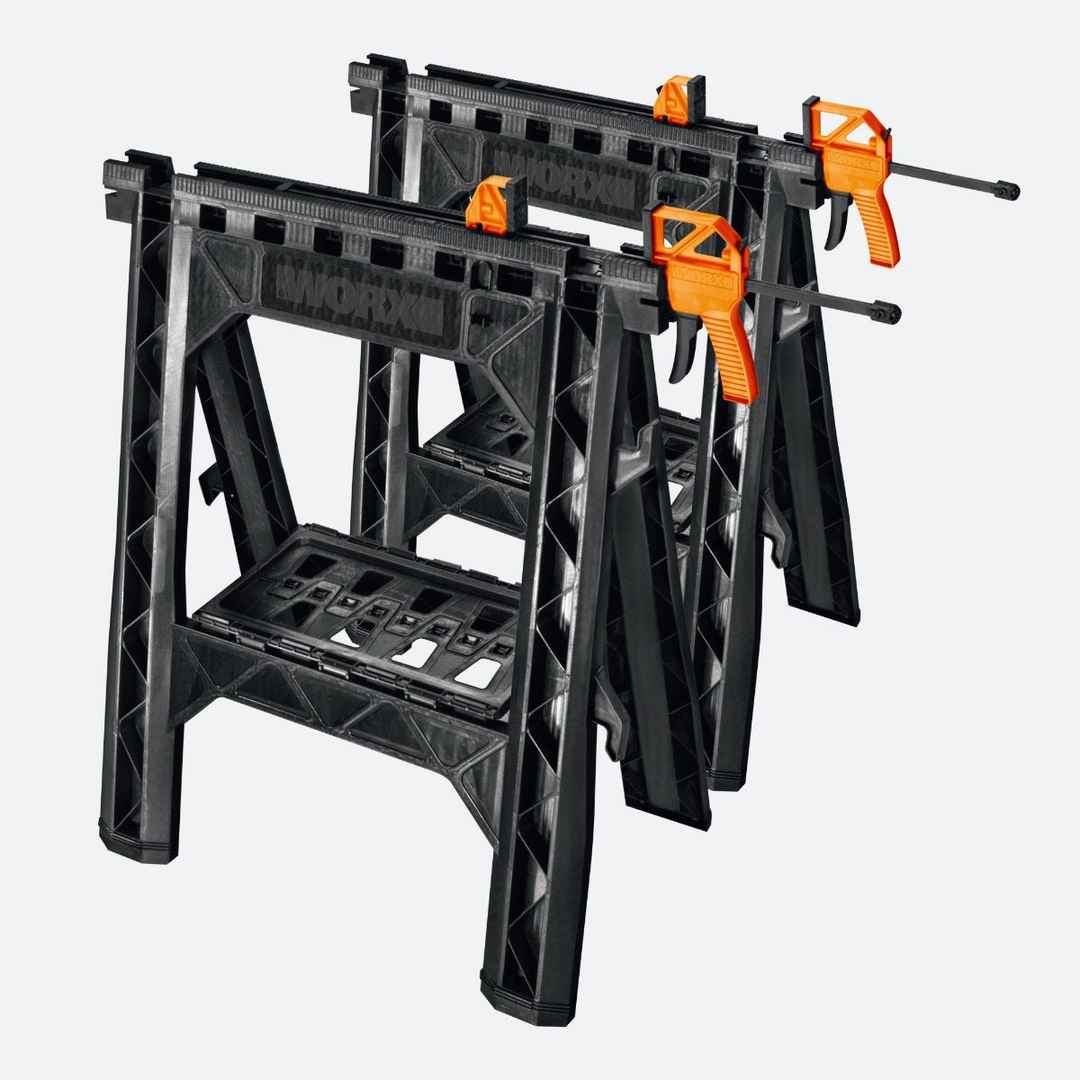 The WORX Clamping Sawhorses come with two bar clamps that are easy-to-use, attach instantly and hold your materials for both horizontal and vertical applications. Includes a 3 Year Warranty. Clamping Sawhorses with Bar Clamps | WORX