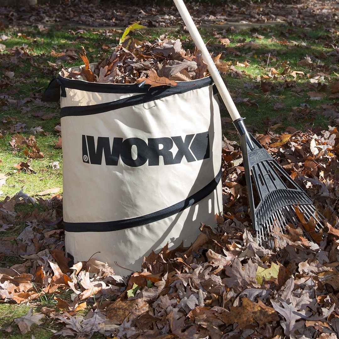 Make yard clean up much easier with the WORX Collapsible Leaf Bin. When expanded, it's about the size of a large garbage can, but it folds up for space saving storage. WORX 26 Gallon Collapsible Leaf Bin