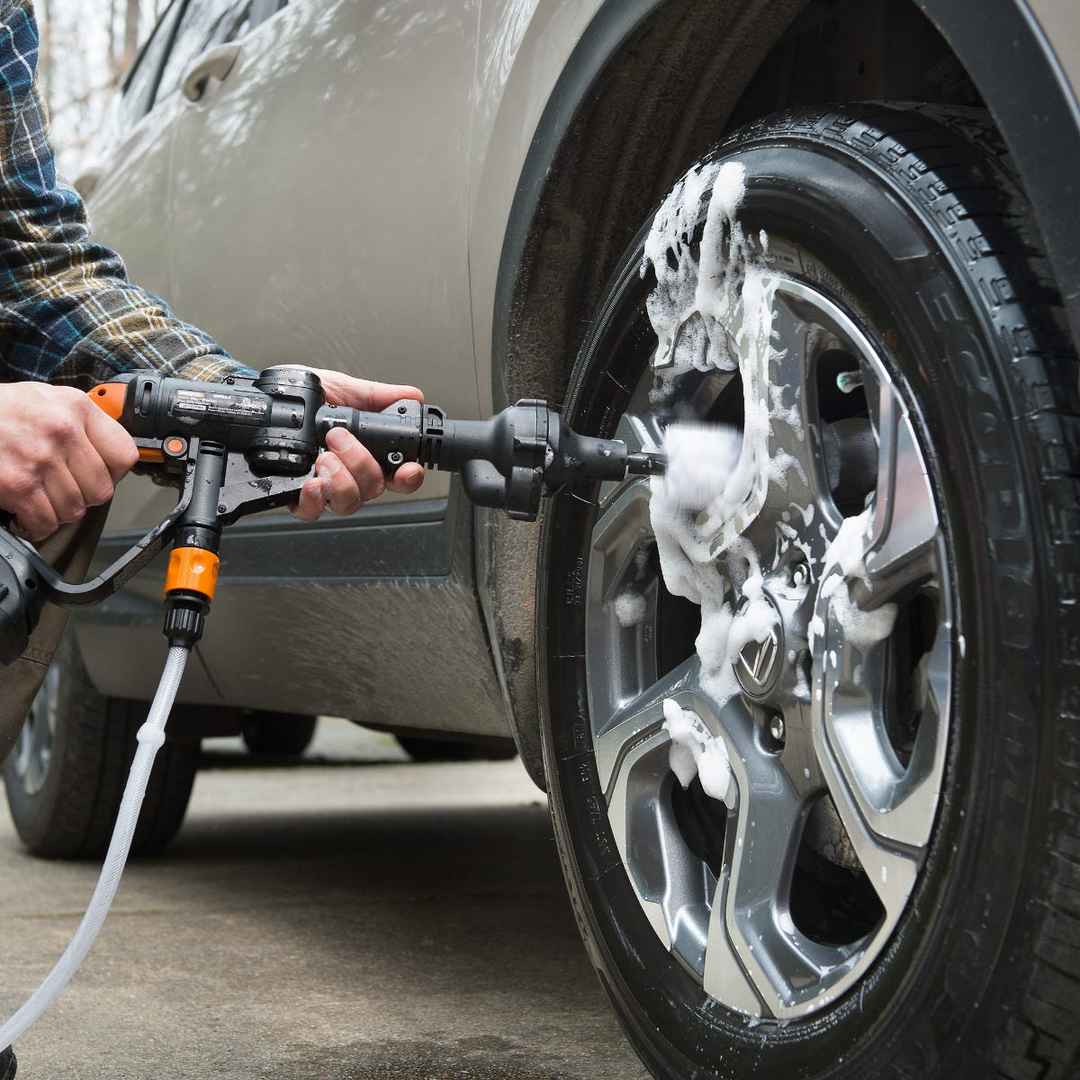 Get in-between tight spaces and really scrub them out. Water-powered brush with spinning head that works with the Hydroshot Portable Power Cleaners for cleaning sensitive surfaces and tight areas. Great for cleaning automobile rims, wheels and more. WORX Hydroshot Cleaning Brush with Quick Snap Conn...more