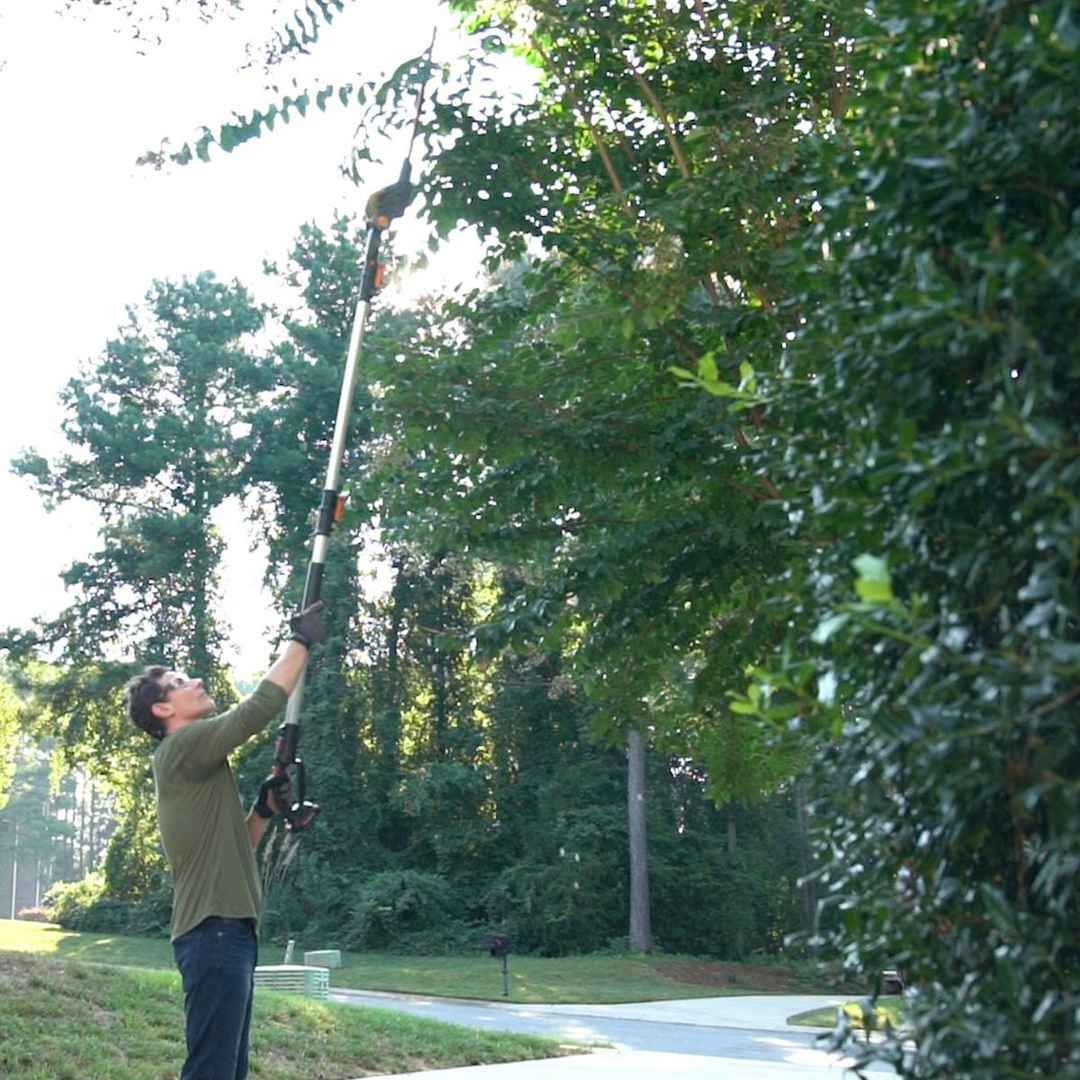 2-in-1 capabilities allow this hedge trimmer to be adjusted from a straight traditional hedge trimmer to a telescopic pole hedge trimmer. 20V Power Share Cordless 20" 2-in-1 Hedge Trimmer w/ Attachment Capabilities - Tool Only | WORX