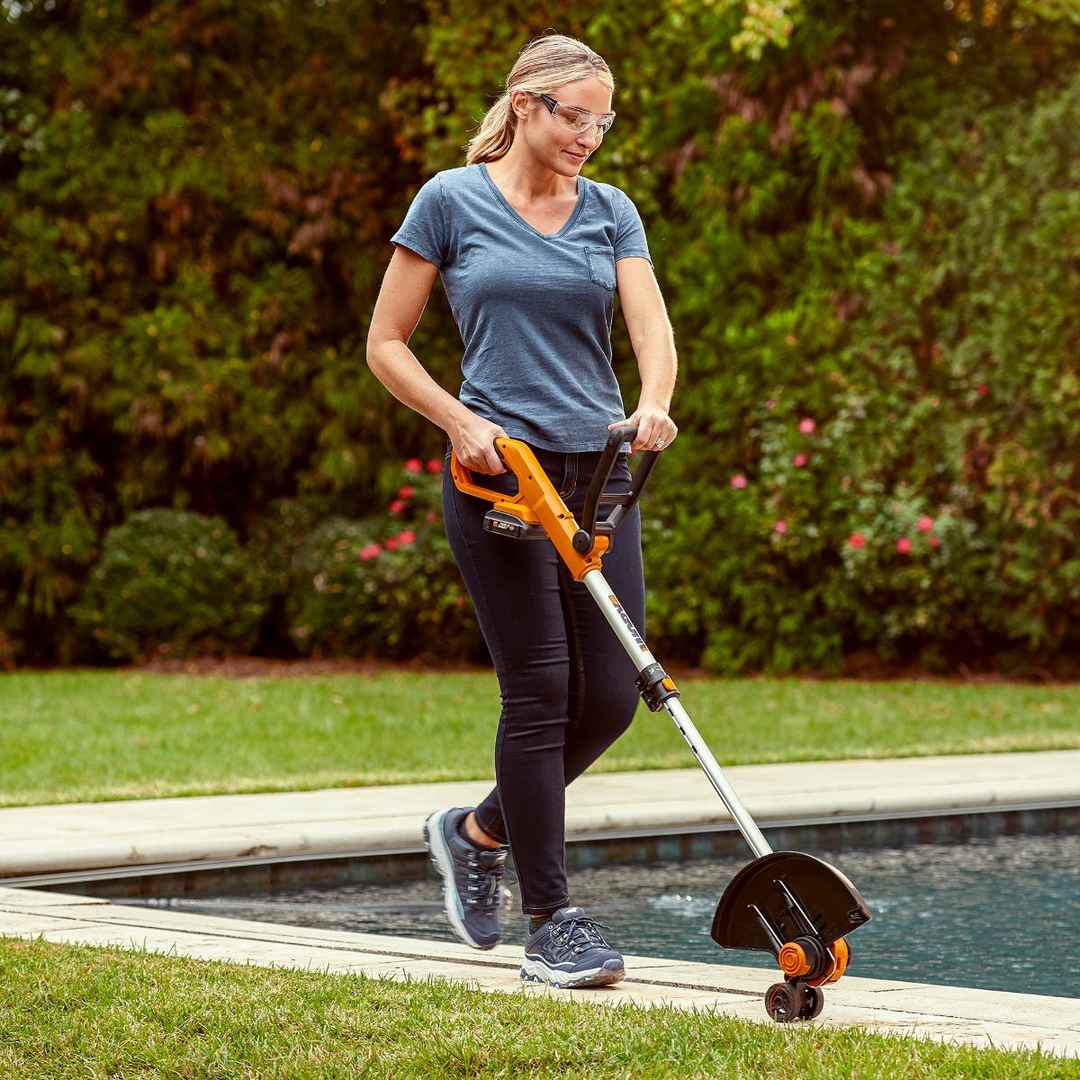 Stop making yard work such a chore and get the WORX 20V Max Lithium Power Share 12 Cordless Grass Trimmer with In-Line Wheeled Edging. That sounds like a lot, but it could not be easier to use. Just pull the head down and rotate it 180 degrees to switch between trimming and edging functions. 20V Pow...more