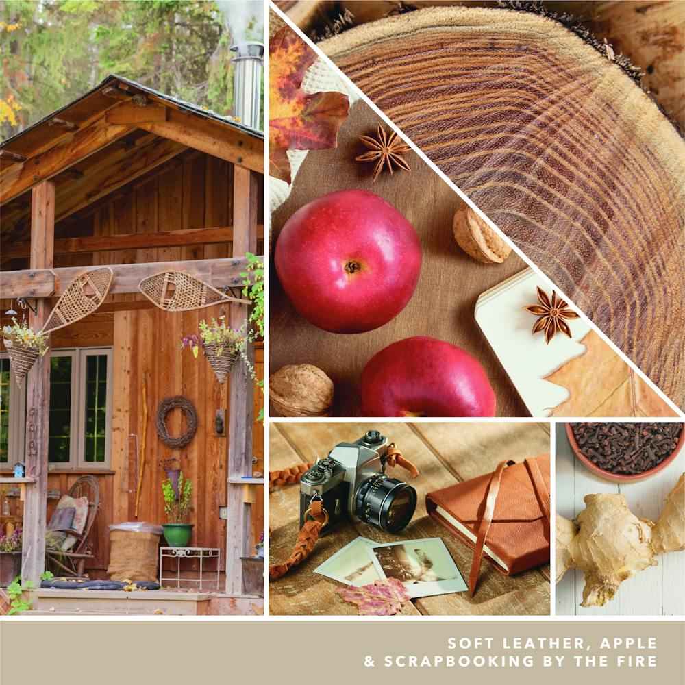 Spend the afternoon scrapbooking by the fire in your cottage, surrounded by notes of soft leather, apple, and glowing amber. Vivid photographs of the perfect fall day a log cabin in the woods, vast mountains, an abundant pumpkin patch, a tranquil lakeside dock mingled with the aromas of pumpkin, s...more