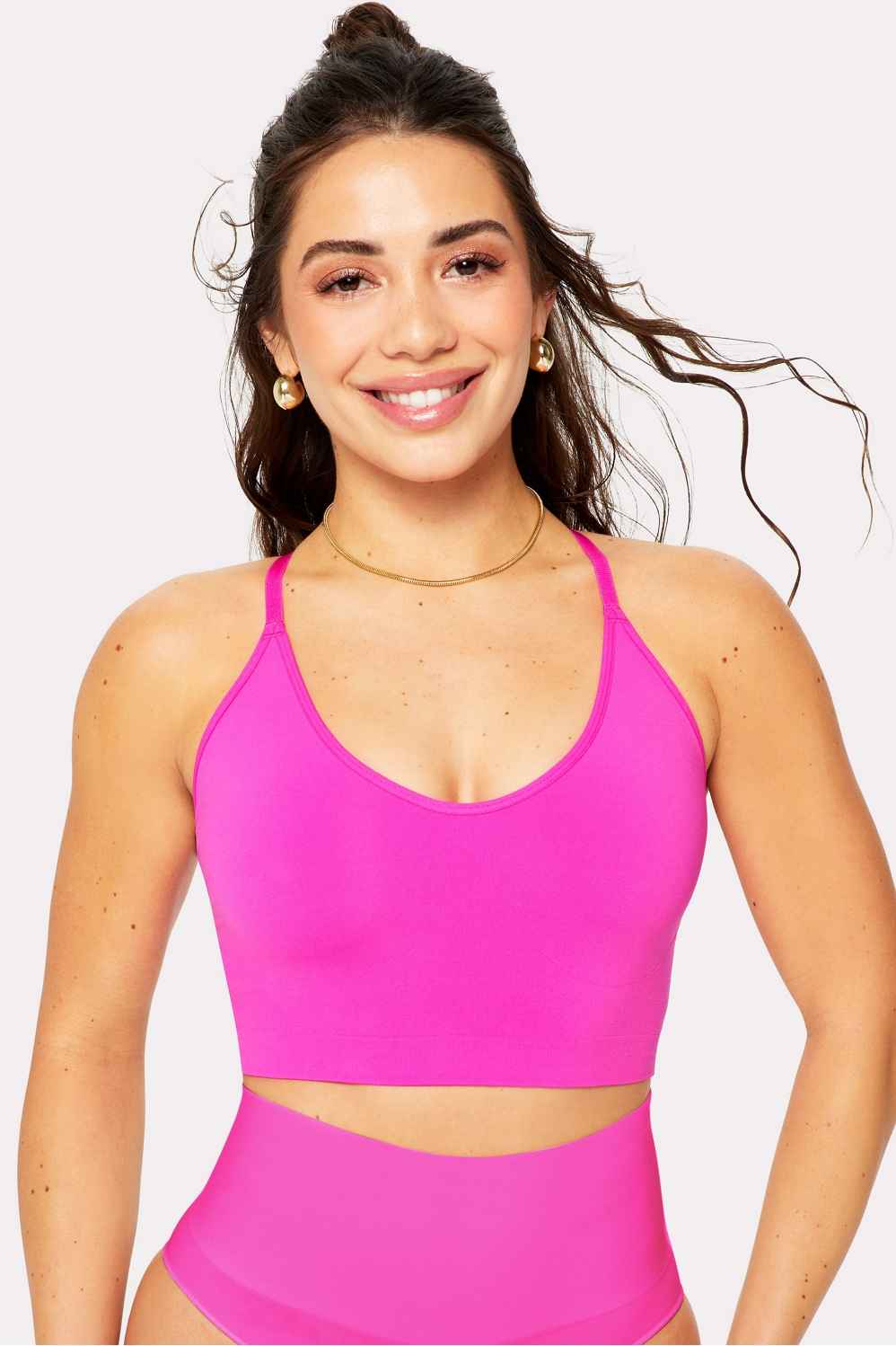 Lift, support, and define your bust in the sexy shaping bra that keeps going viral for a reason! Features removable pads, targeted bust zoning to define and contour, and convertible racerback straps. Runs small. Size up for your best fit.