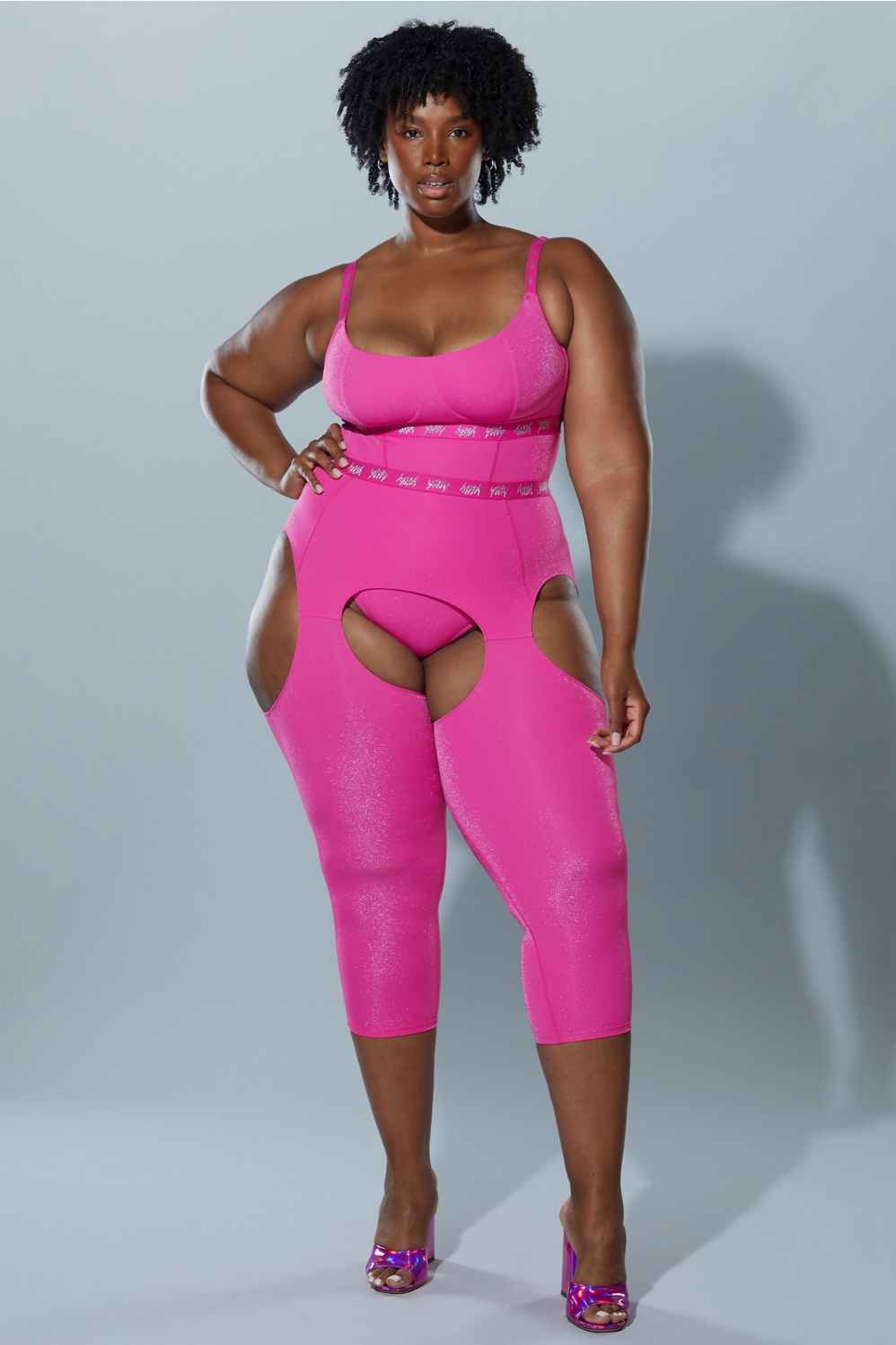 Ready to go viral? Made famous by Lizzo, this statement legging has a chap-style silhouette. It's made in shimmery-soft lurex and features a breathable mesh interior. Read: supportive and flattering, all-around compression.
