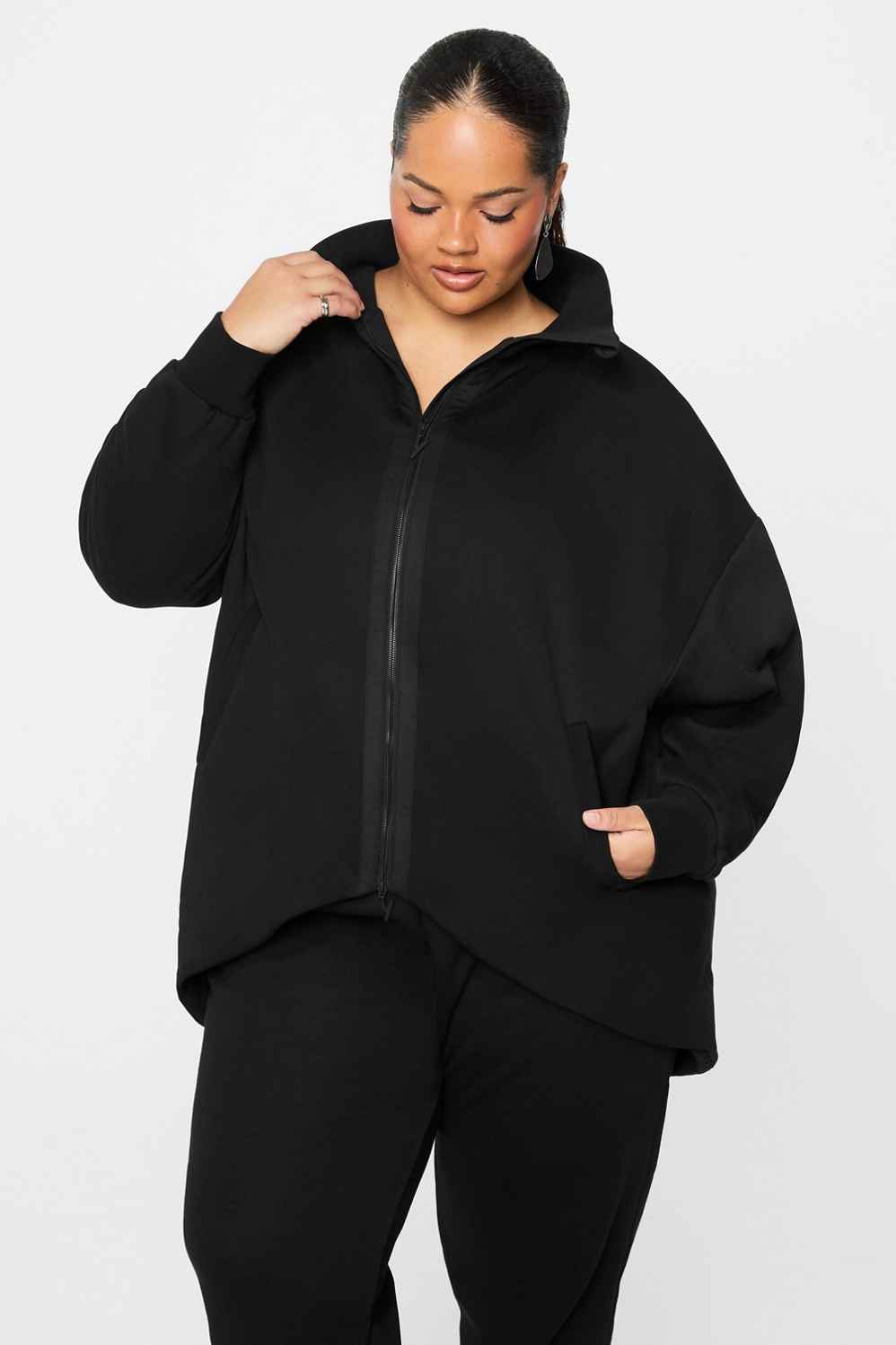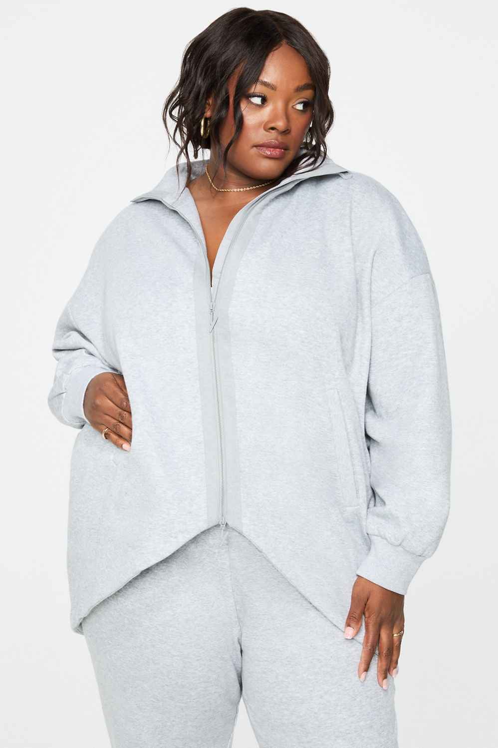 A versatile layer for morning walks and evening hangouts. Soft fleece and jersey lining provide plush warmth, while the ribbed collar and cuffs add style. The oversized cocoon shape offers full coverage, perfect for pairing with our leggings.