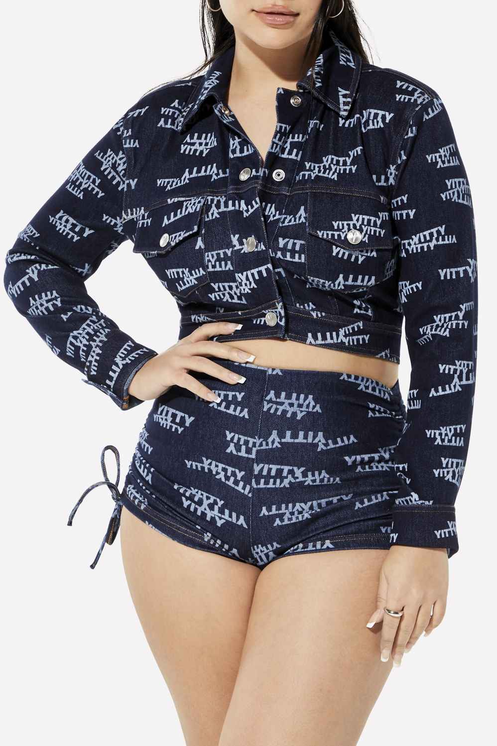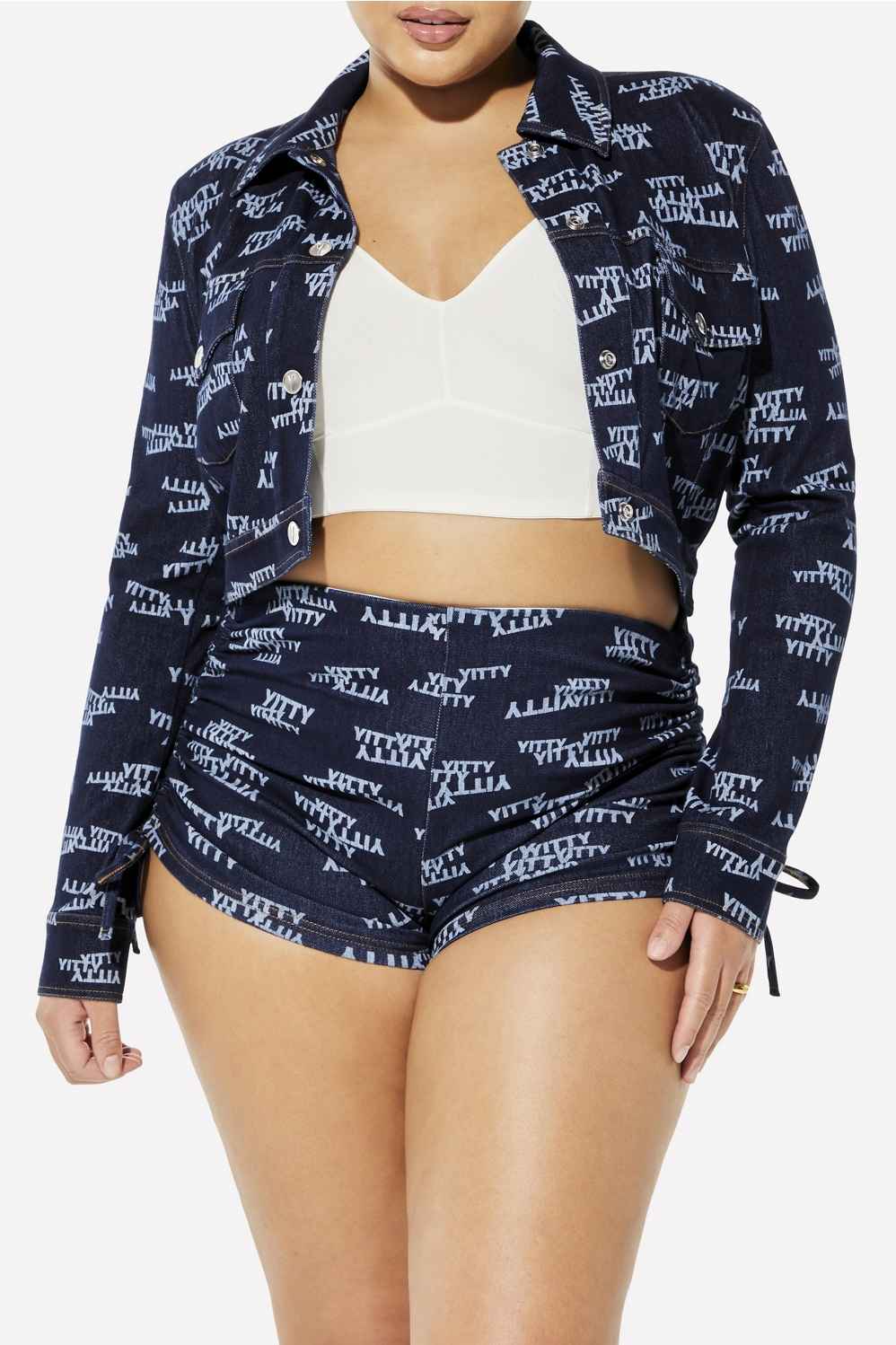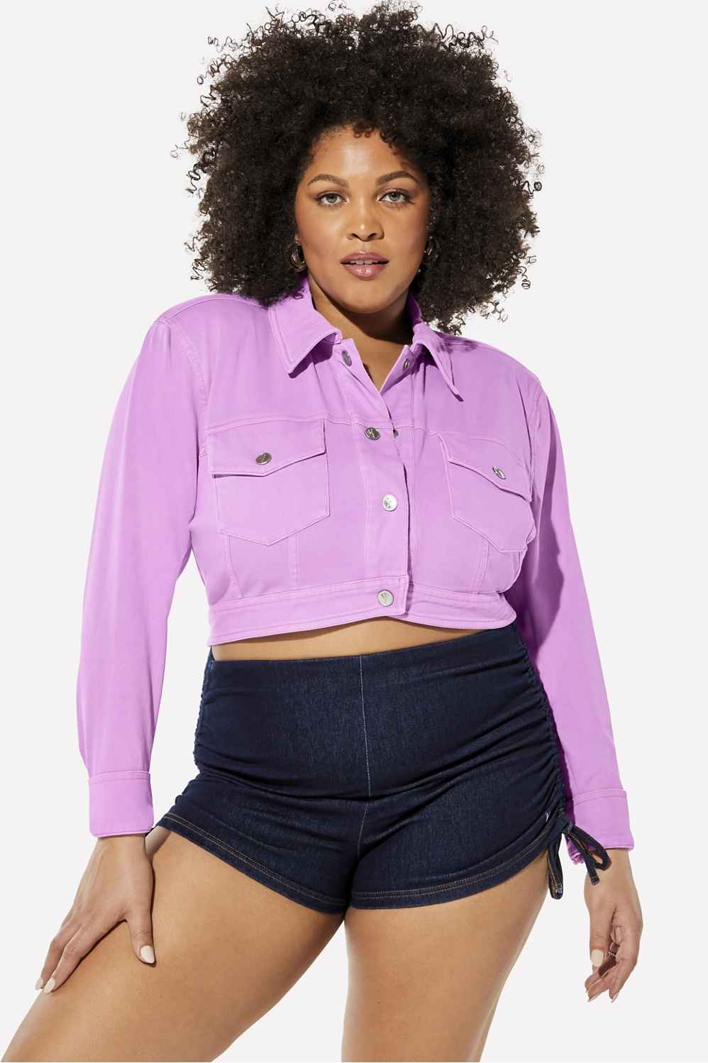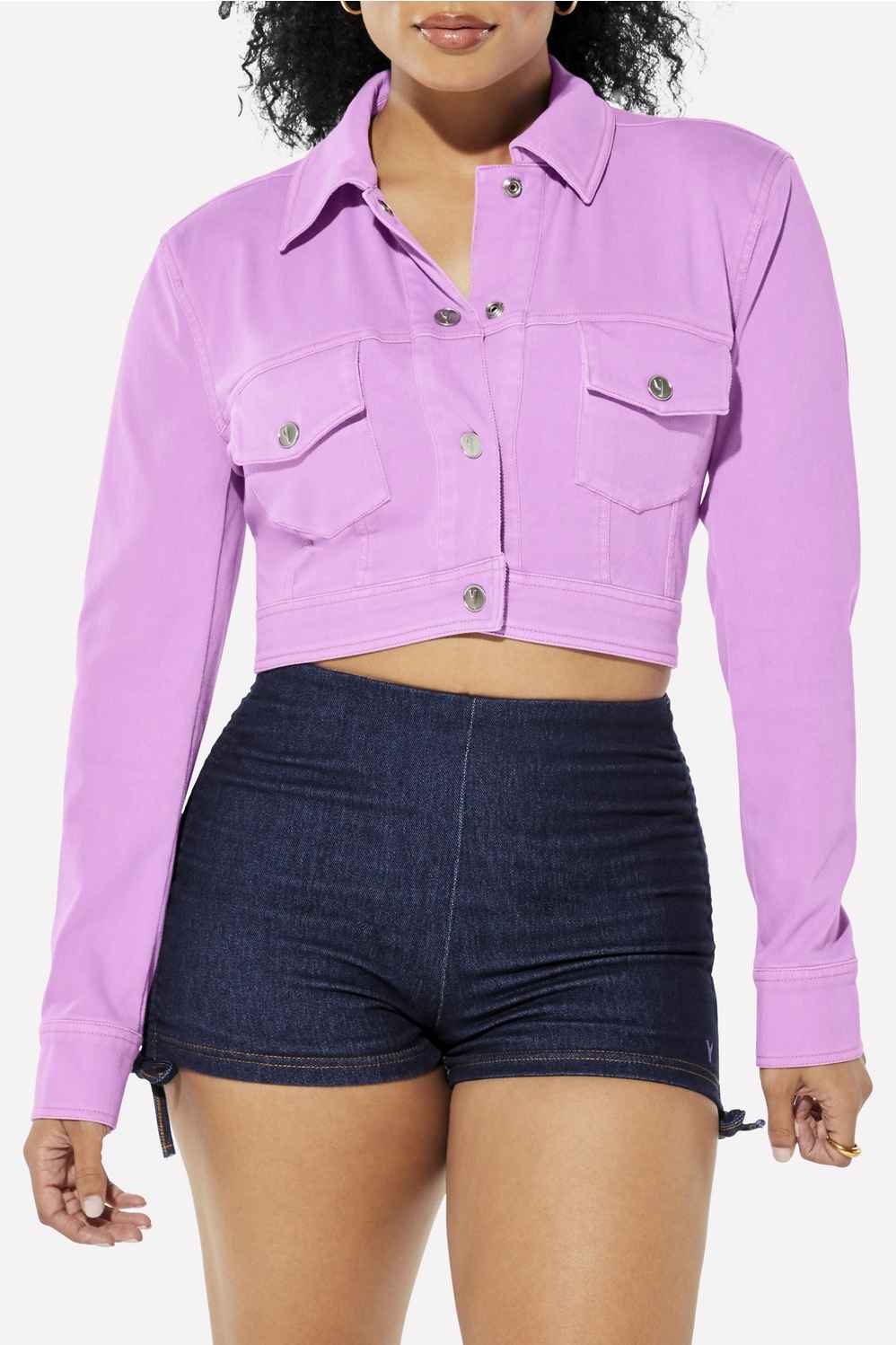 Made from smoothing and comfy four-way textured stretch twill fabric, our jacket is made with a cropped fit, V-shape hem, and inner shoulder pads for the drama your look deserves. Pair with Denim Is Served Smoothing Stretch Jean or Booty Short.
