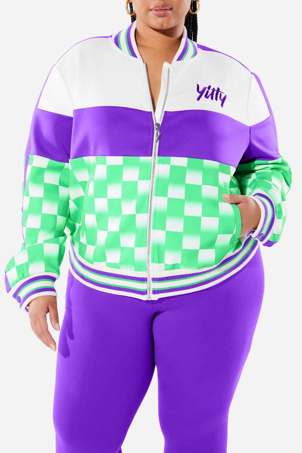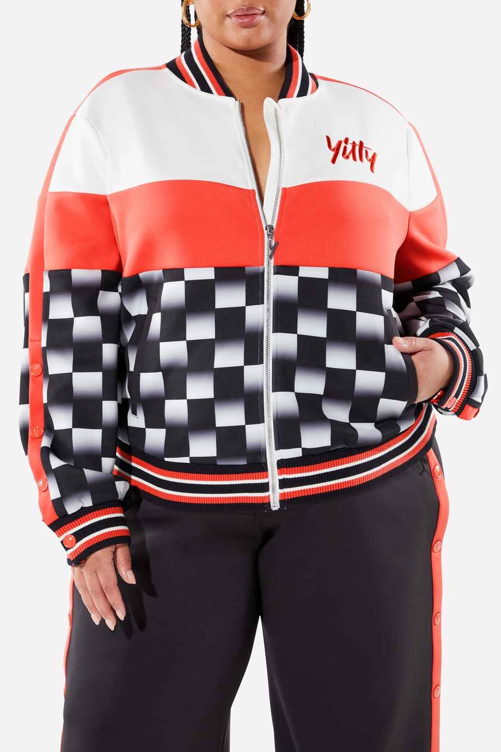 MAJOR MOOD. This statement Track Jacket features arm snaps up to the elbow unsnap as many as you want for a look that matches your attitude. This Jacket has a relaxed fit, side pockets, and Y logo zipper.
