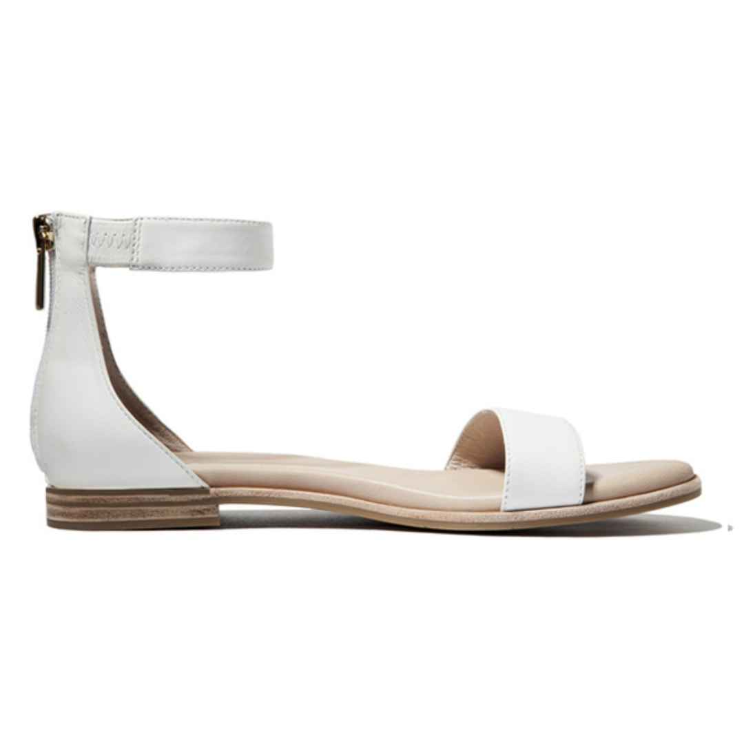 The Cambelle white leather sandal is the epitome of warm weather style and the latest update to our sleek ankle-strap sandal. An easy elastic gore and zipper pull back ensures a secure and comfy fit, while its chic simplicity is perfect for accenting all your pedi-ready looks. With memory foam footb...more