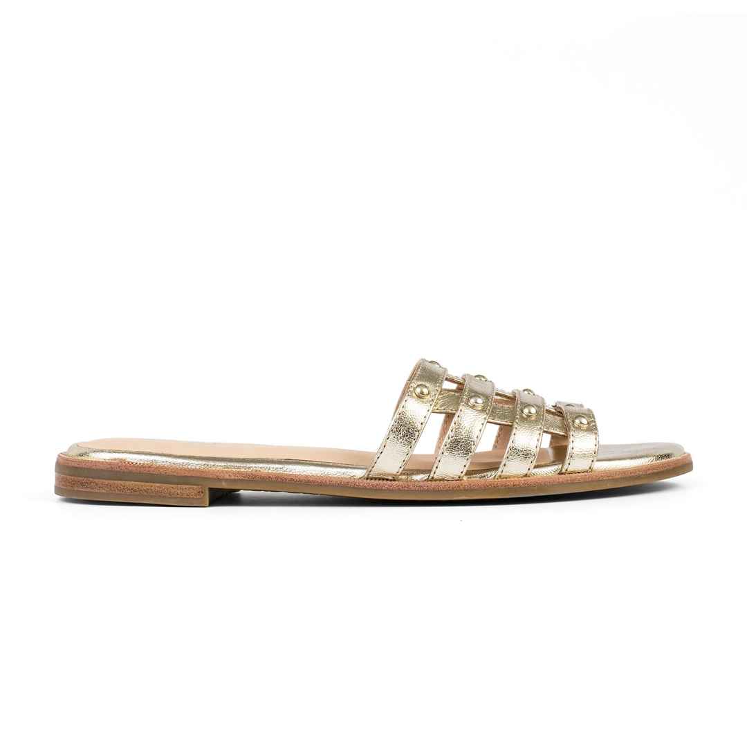 Cara Gold Leather Studded Slide