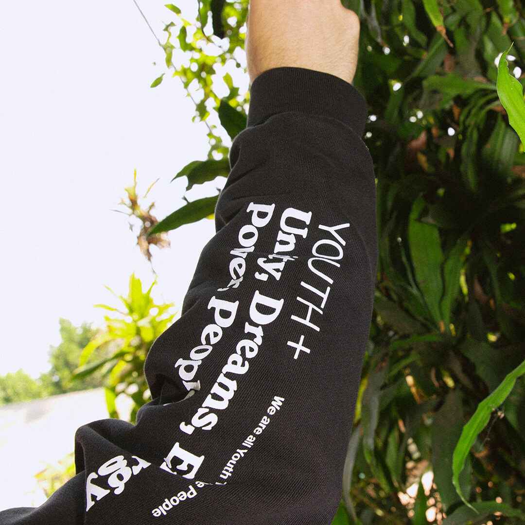 Printed + Responsibly made in Los Angeles. Designed by YTTP Studios. Fleece-lined + garment dyed Drop shoulder Large front pocket Unisex, relaxed fit 100% Regenerative Organic Cotton Model Sizing (Chronological Order): Quani is 5'11" + wearing a XL Greg is 5'10" + wearing a L Manna is 5'3" +...more