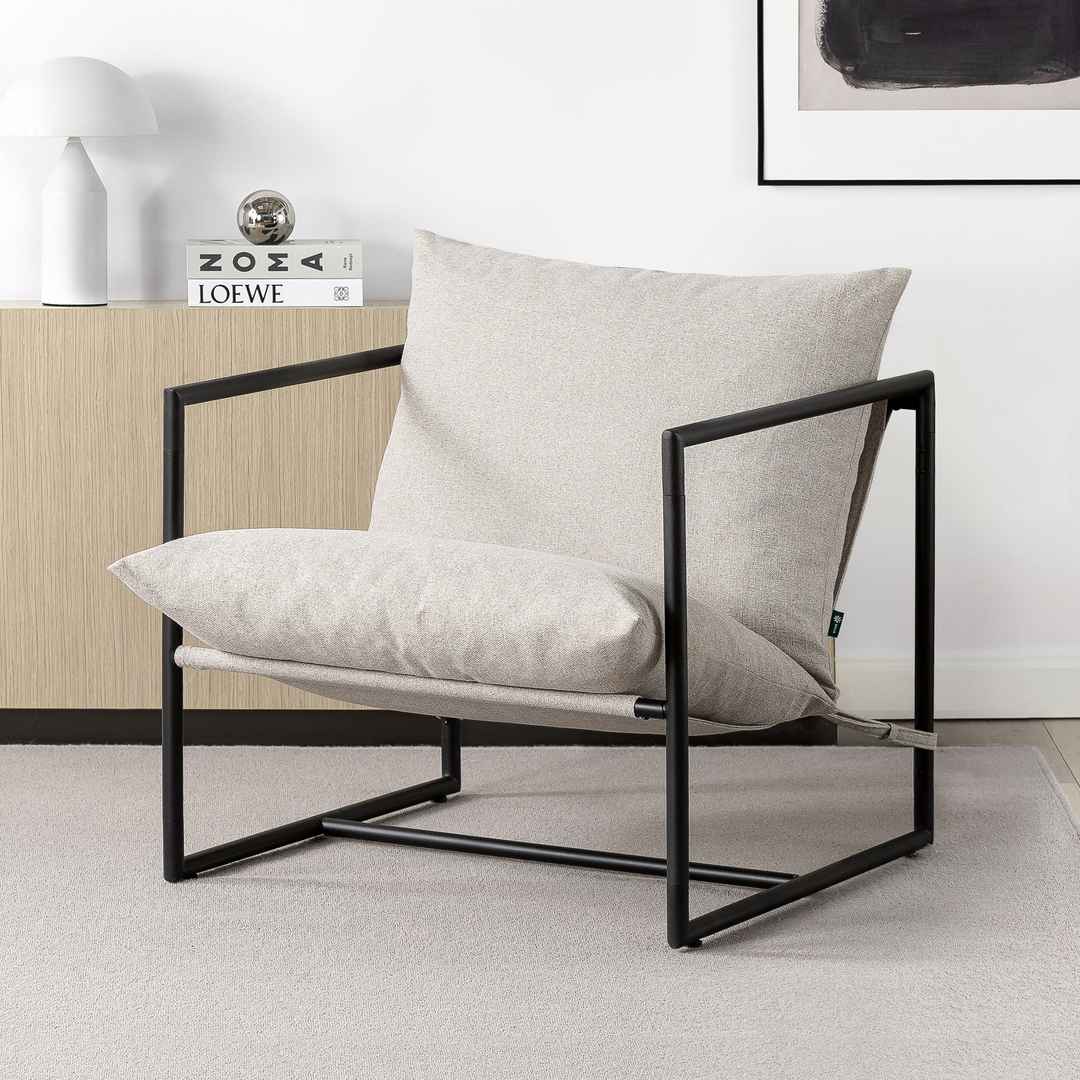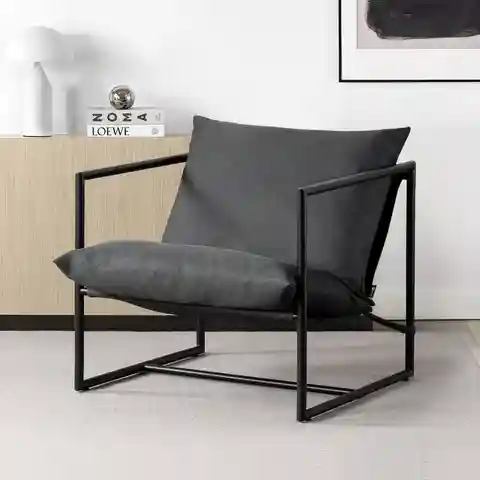 The Aidan Sling Chair is modern, casual, and inviting all at the same time! A relaxed sling design and contemporary square frame gives you the extra dose of style youre looking for. Its comfy cushioning is filled with shredded foam that molds to your shape when you take a seat. With an extra roomy d...more