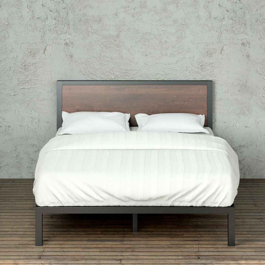 Bring your bedroom up to date with the Mory Platform Bed Frame, made with an industrial look, a hint of rustic beauty, and a price thats easy on your wallet! A bold black metal frame complements its handsome wood finished headboard, giving your room a feel thats both clean- cut and organic. Built wi...more